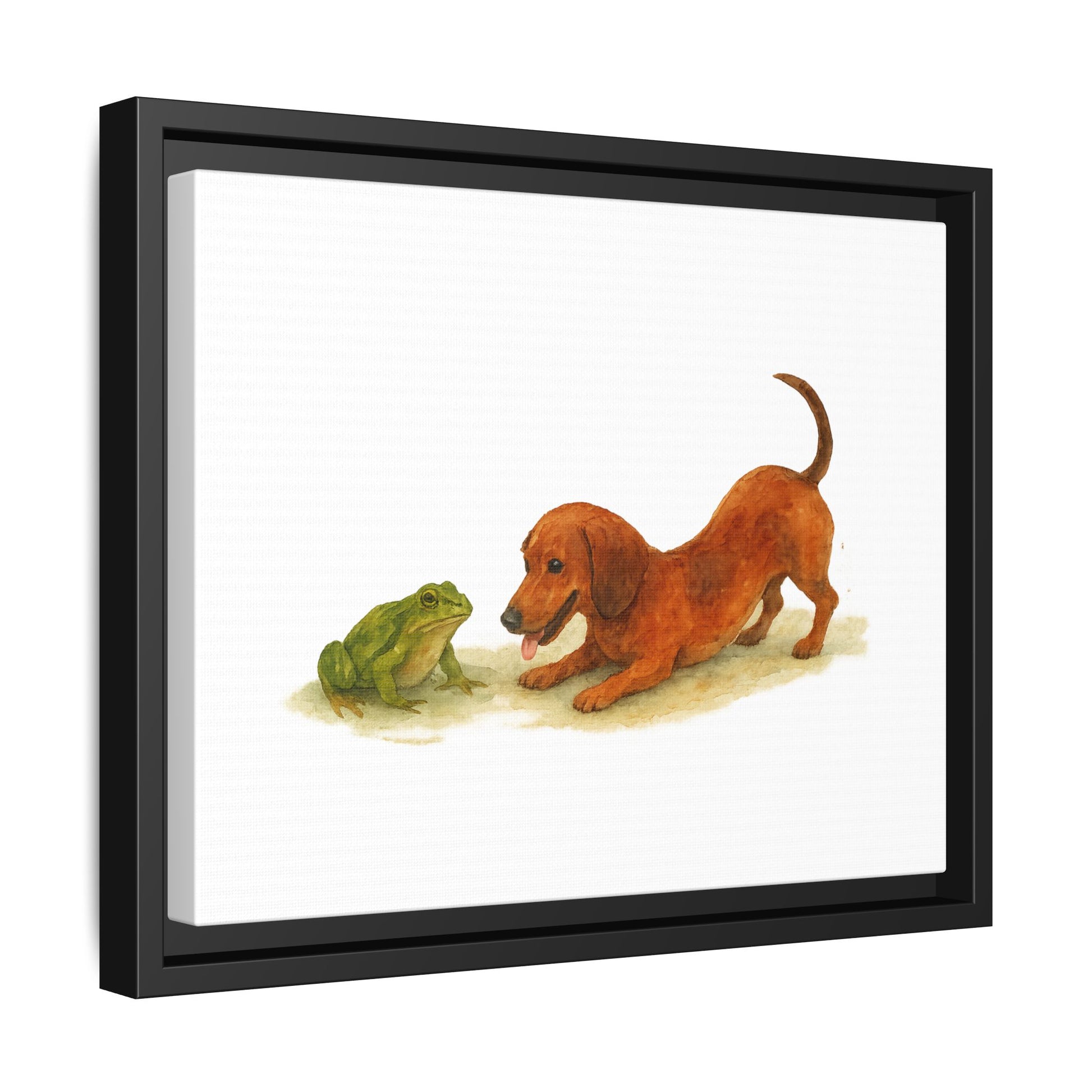 Transform your space with this stunning Framed Canvas, perfect for adding a touch of whimsy and charm to any room. The delightful scene featuring a playful pup and a curious frog evokes a sense of joy and nostalgia, making it an ideal addition to a family-friendly environment. Its vibrant colors and unique design will draw the eye and spark conversation, making it a wonderful gift for animal lovers, children, and anyone who appreciates playful art. This piece is perfect for home decor and is especially relevant for occasions like birthdays, housewarming parties, or just to brighten up your own living space. It fits seamlessly into kids' rooms, playrooms, or cozy living areas, creating a warm and inviting atmosphere.