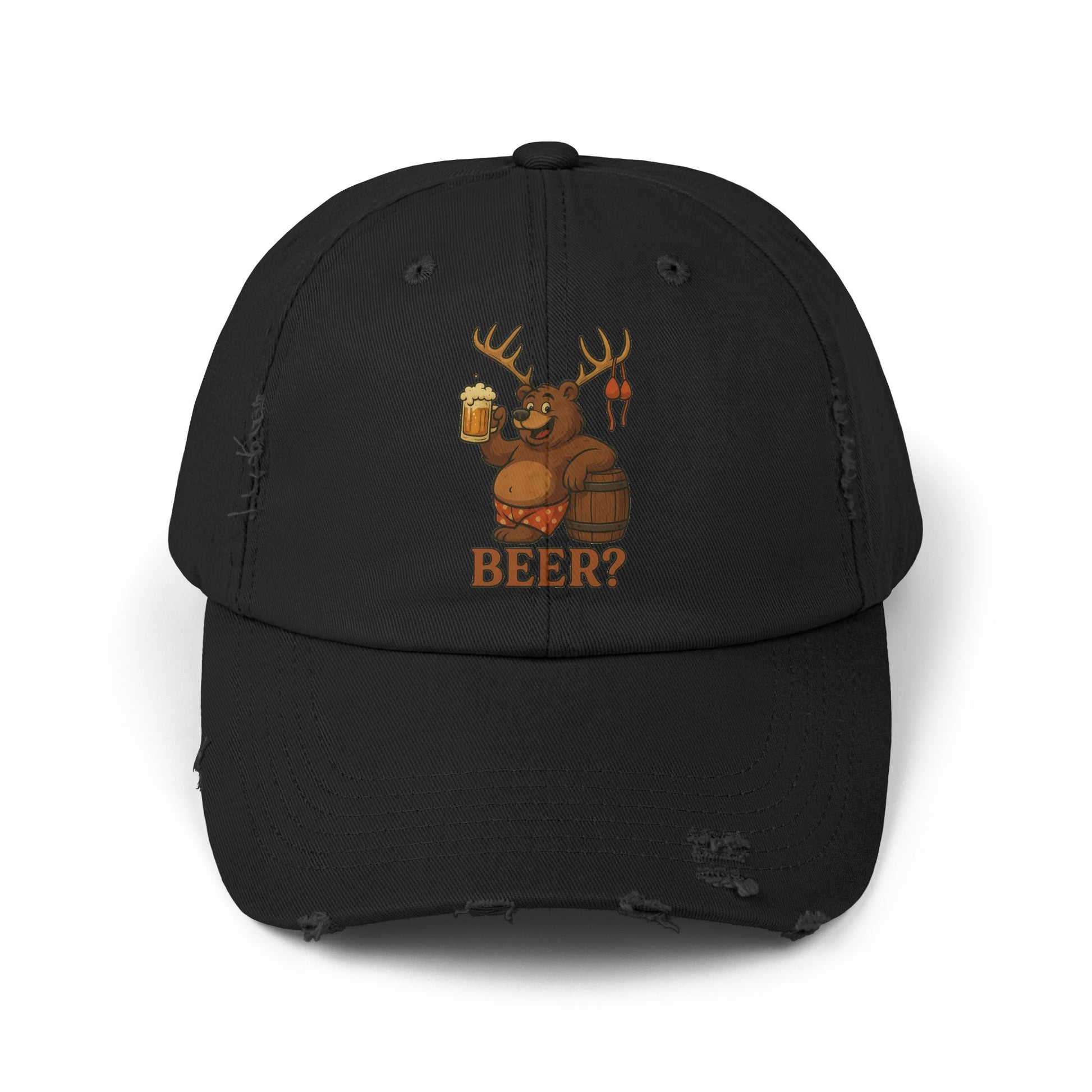 Men's Distressed Beer Cap, Fun Outdoor Hat, Gift for Beer Lovers, Casual Accessory, Unique Party Favor, Bear, Deer, Beer?