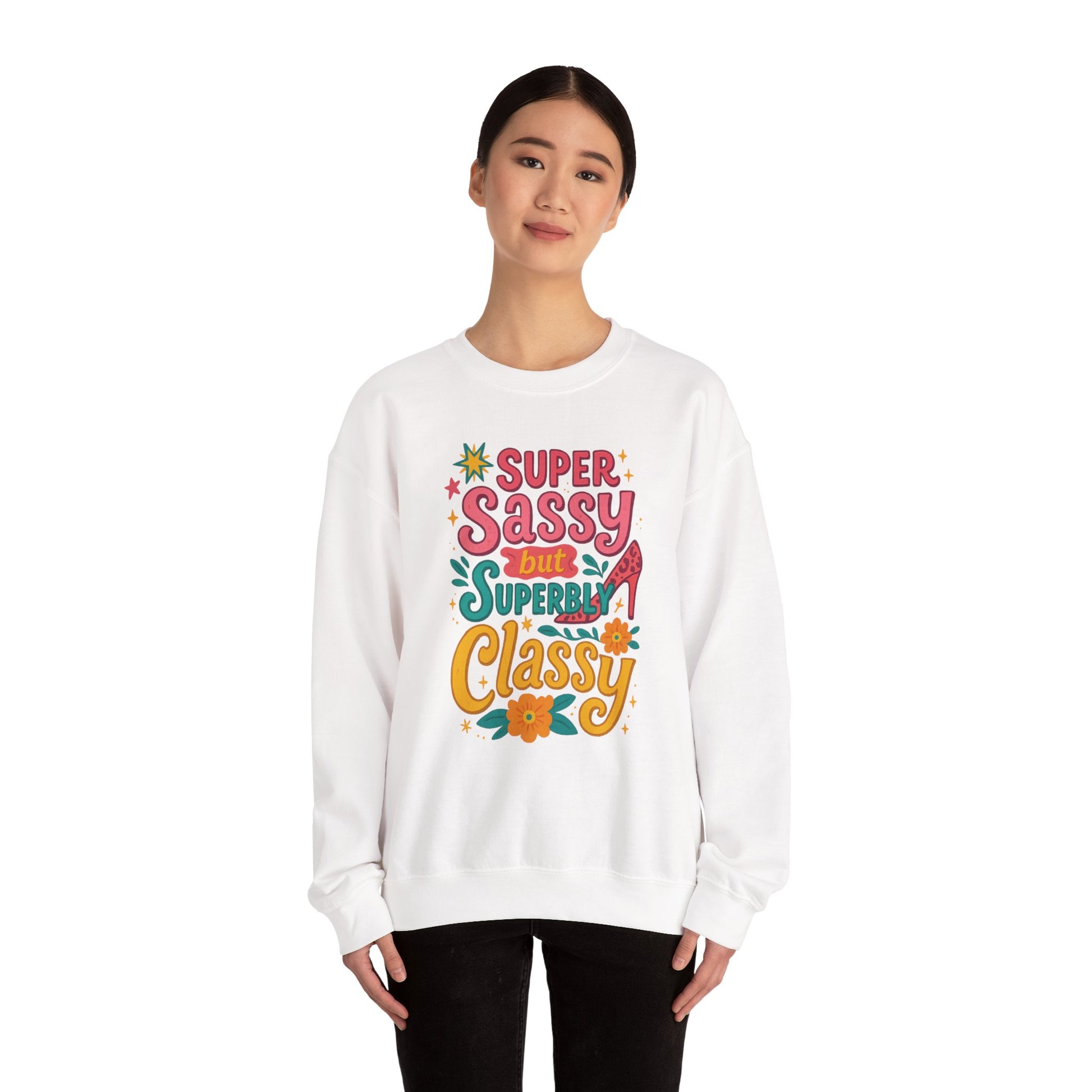 "Super Sassy, but Superbly Classy" Cozy Crewneck Sweatshirt
